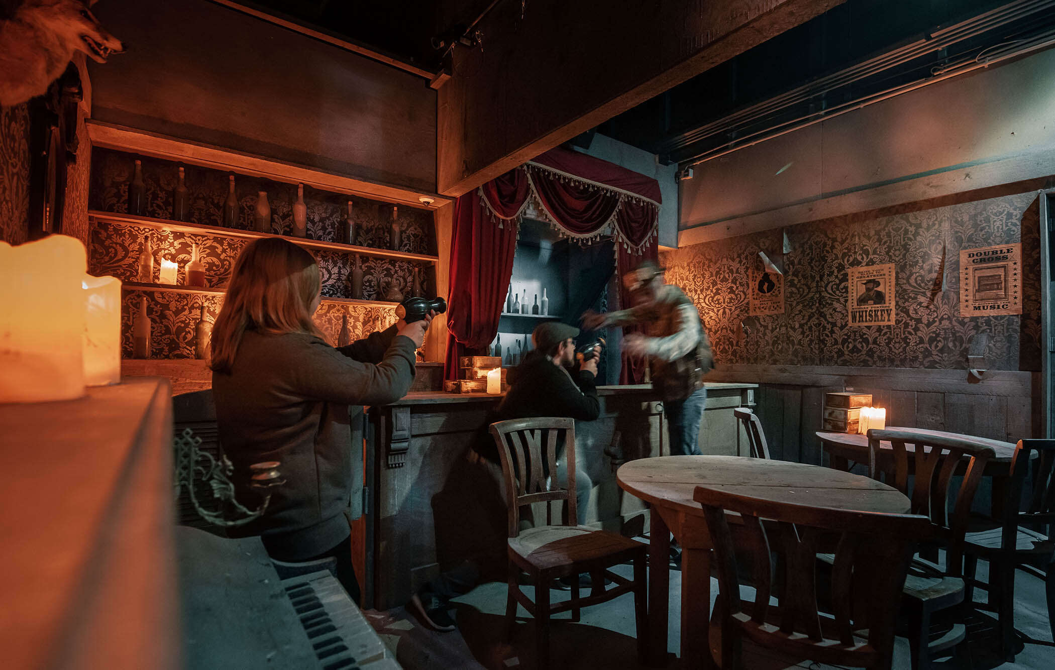 Een walkthrough attractie wordt vaak toegepast in situaties waar verschillende ruimtes, scènes of etages met elkaar verbonden worden. Door onze unieke interactieve systemen toe te passen in een walkthrough attractie kunnen bezoekers met draadloze, interactieve devices op ontdekking gaan, waarbij ze interactie hebben met het decor, media of zelfs live acteurs. Hierbij kun je denken aan een combinatie van shooting games, treasure hunt elementen en escape room features, zoals verborgen codes, hints en geheime deuren.