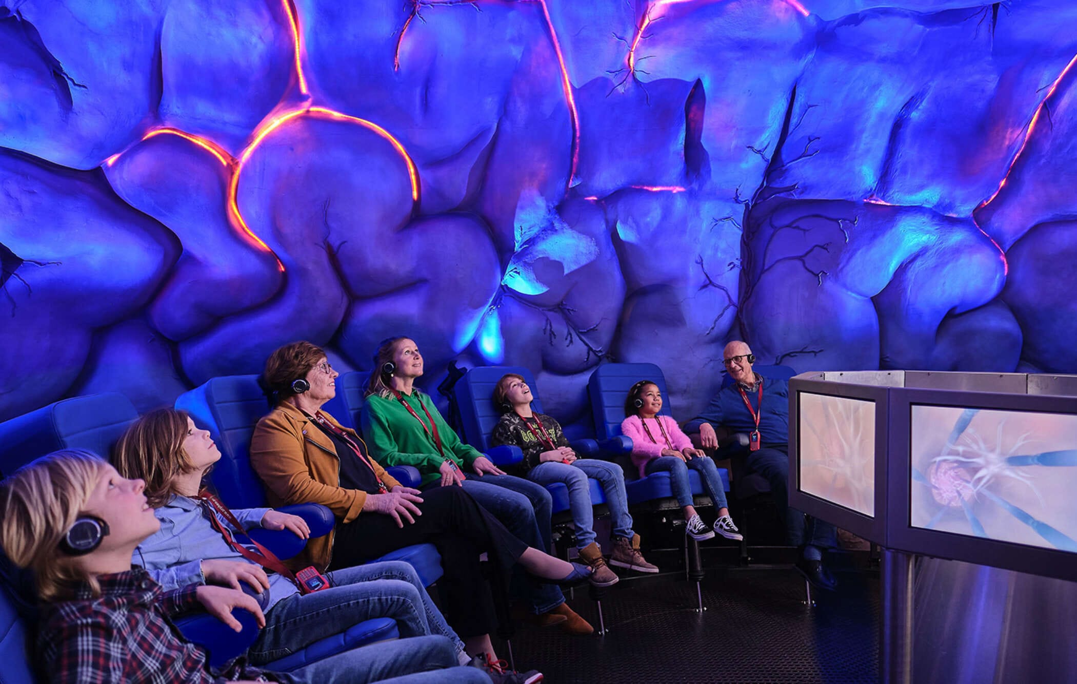 Door de implementatie van onderhoudsvriendelijke laserprojectoren met een hoge lichtopbrengst is de visuele kwaliteit in de gehele attractie gemoderniseerd. In kerngebieden zoals het hart en de baarmoeder versterken grootschalige 3D-projecties het educatieve verhaal, terwijl gerichte projecties in de neus, hersenen en het oog de anatomie tot leven brengen.