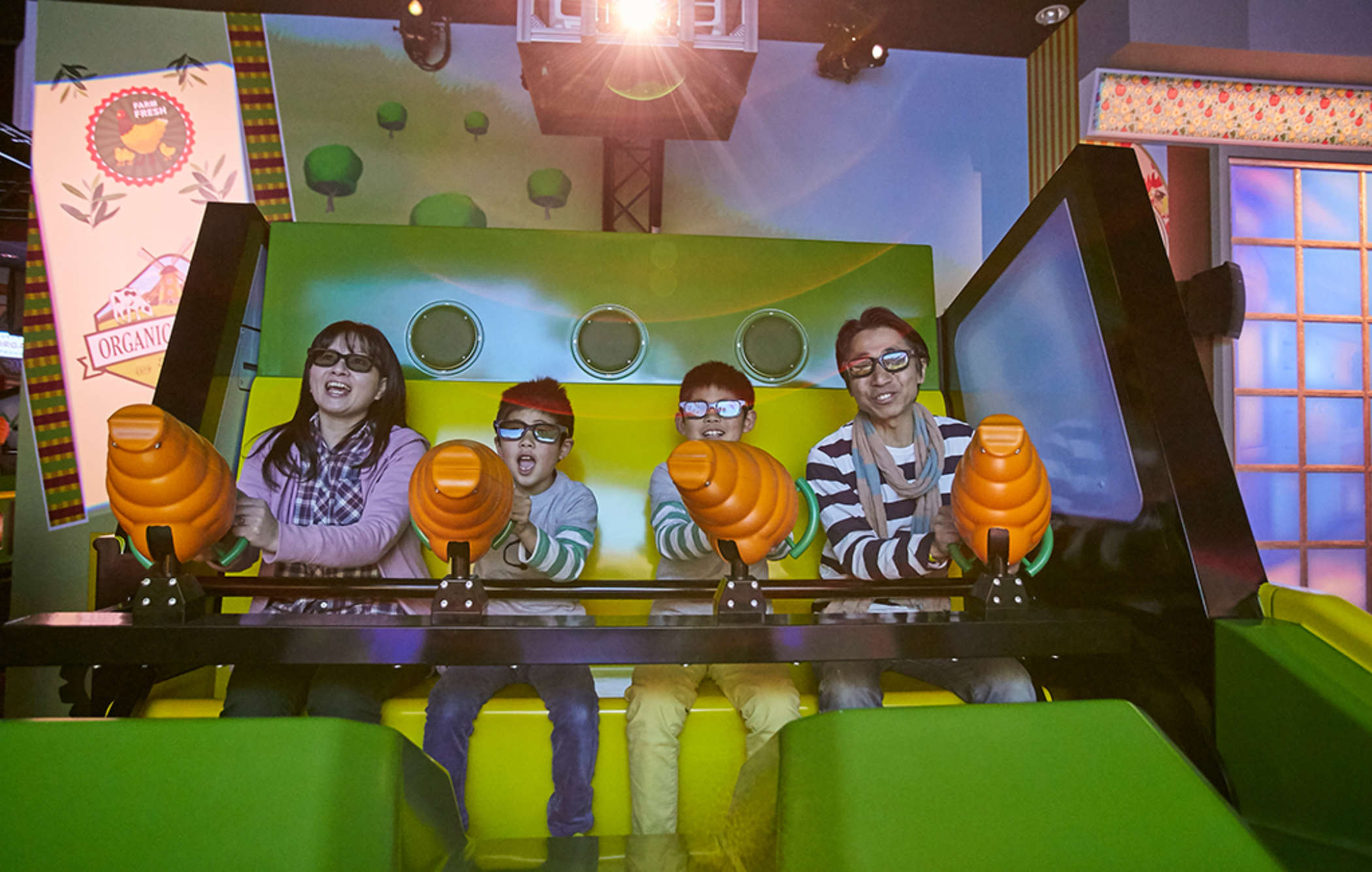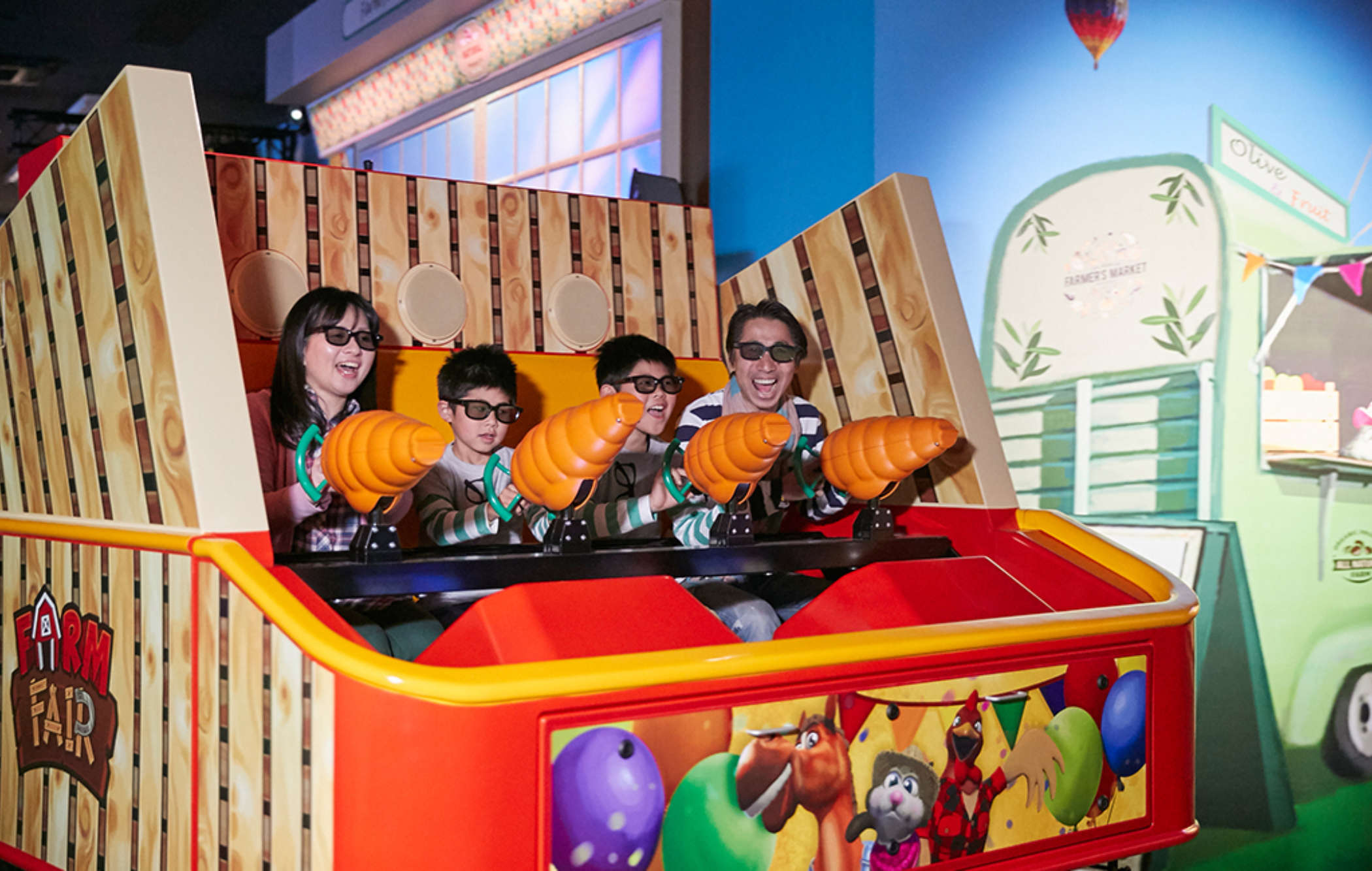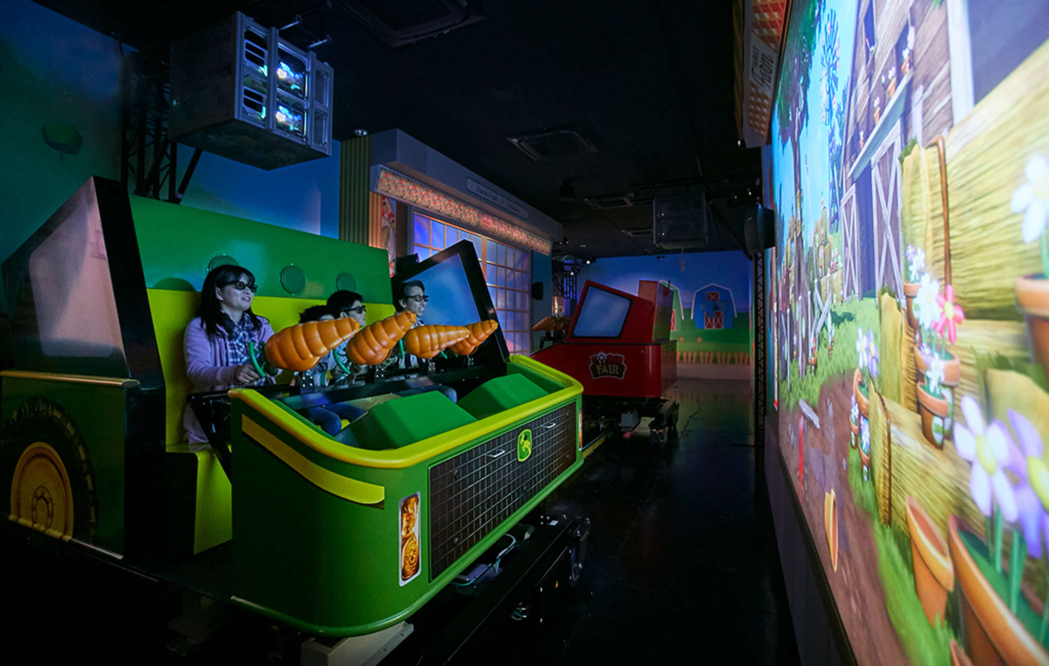 April 2019 saw the opening of the brand new Dark Ride ‘Farm de Bang Bang’ in Nagashima Spa Land! This interactive 3D ride offers visitors a hilarious farm-themed experience, completely designed in Lagotronics Projects’ own Farm Fair IP.